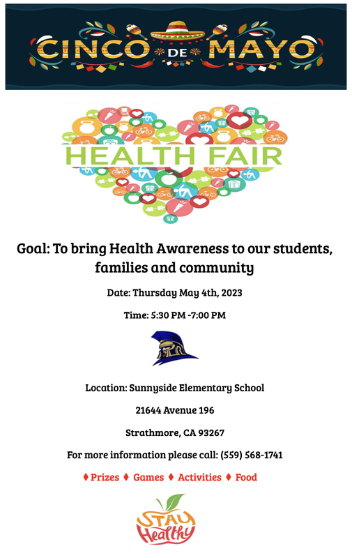 Our Health Fair will be this Thursday, May 4th at 5:30 P.M. Our staff and students have been working really hard gathering up the supplies for food and games. Every year it keeps getting better and better, hope you can make it! Please share.